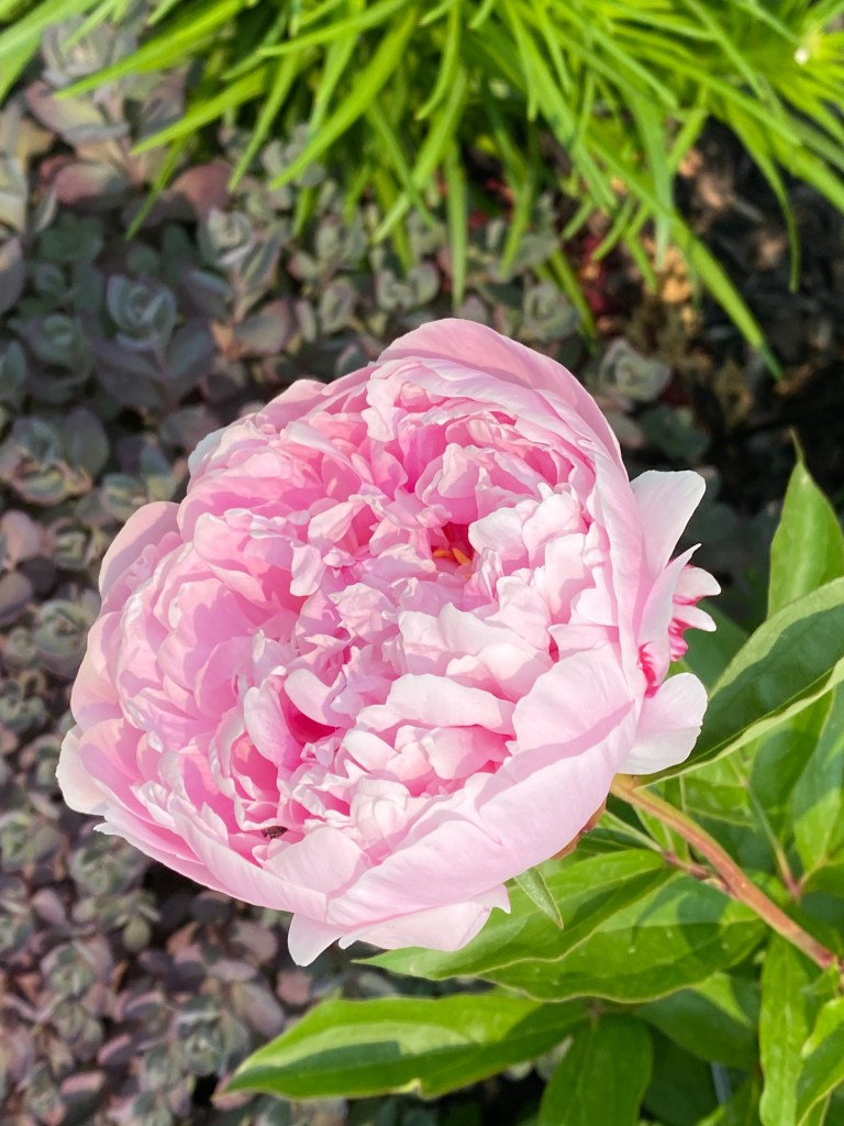 Peonies are definitely one of my favourite flowers, despite the short time they bloom I love their shape, color and smell. They are perennials and they are one of the first flowers blooming in my garden, the long wait for that short moment to admire them reminds me to live in the present and enjoy and savour each moment. I do use a metal support to admire them a few more extra days and I leave the leaves the whole season as a base for other flowers to stand out.